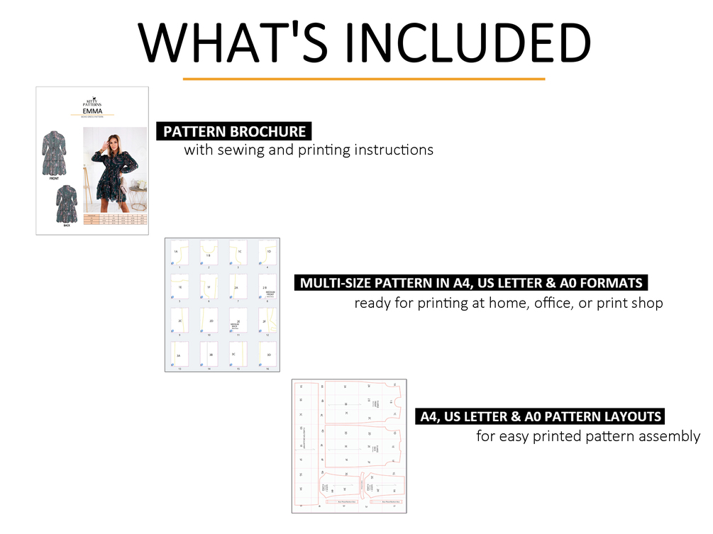 ✓ A4, US Letter and A0 format pattern layouts for effortless assembling of the printed pattern