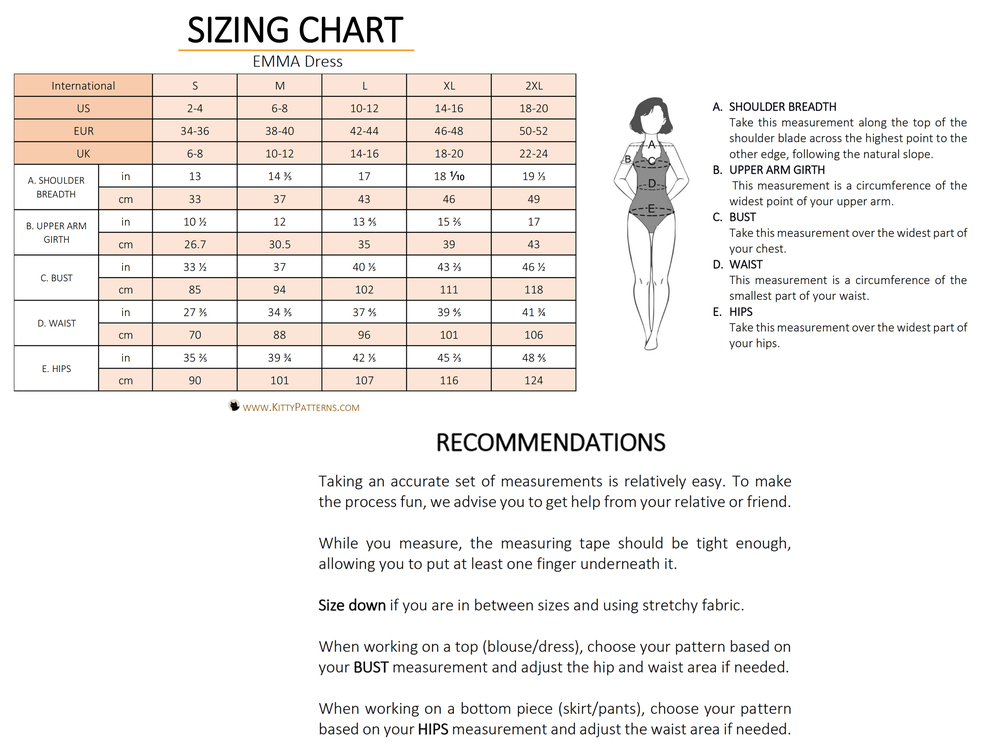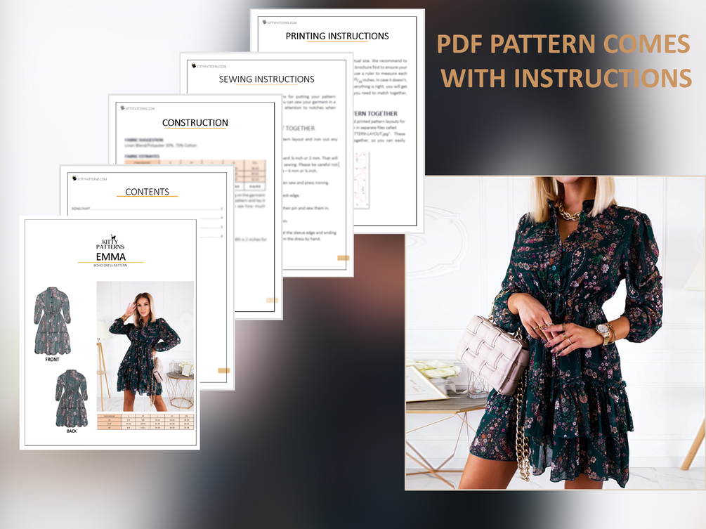 The EMMA pattern is a PDF download, so you can get started right away. Just print the pattern at home, the office, or a print shop, and start sewing! The design is inspired by existing ready-to-wear clothes, so you can be sure that you're creating a dress that's both fashionable and timeless.
