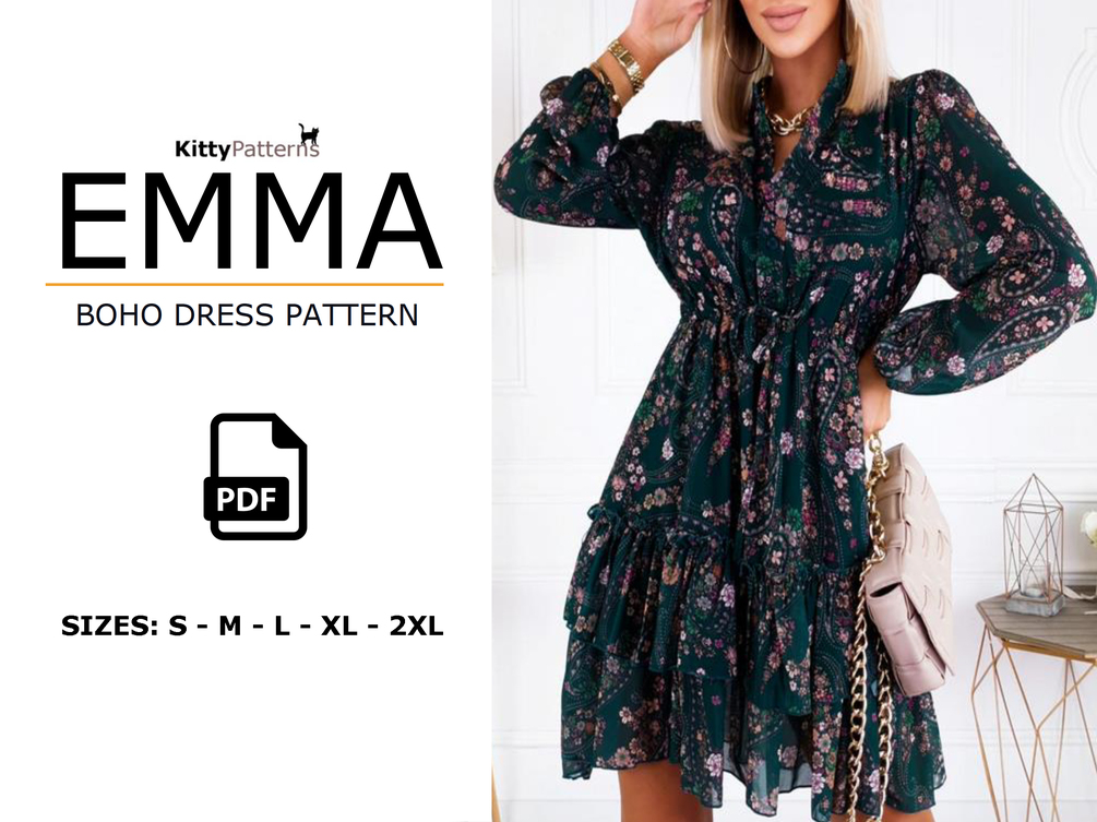 EMMA - Boho Dress Sewing Pattern PDF Women [S,M,L,XL,2XL]