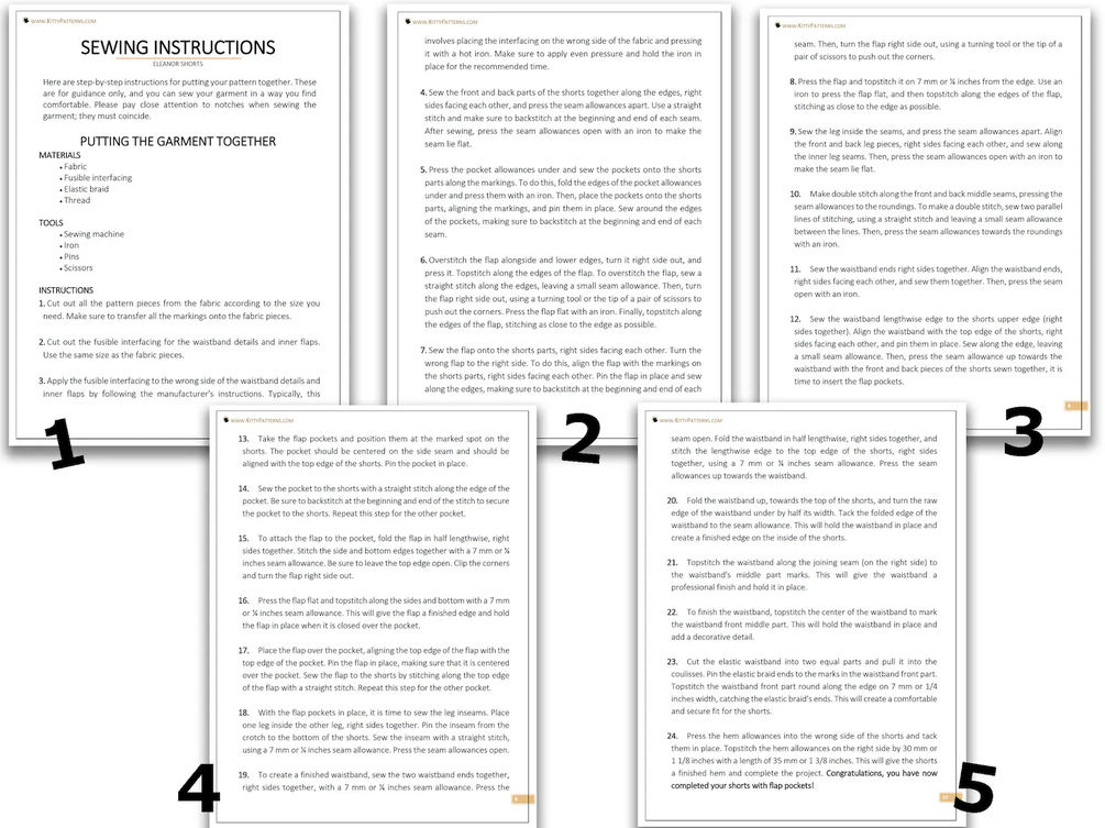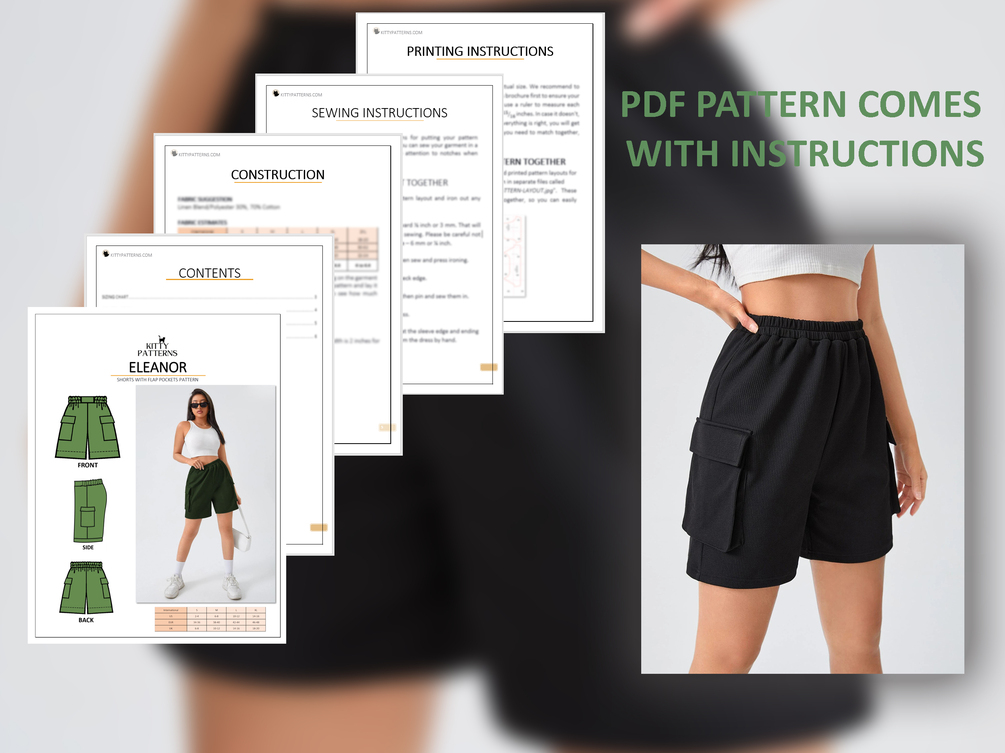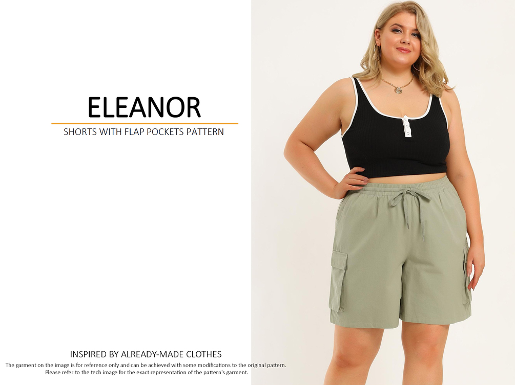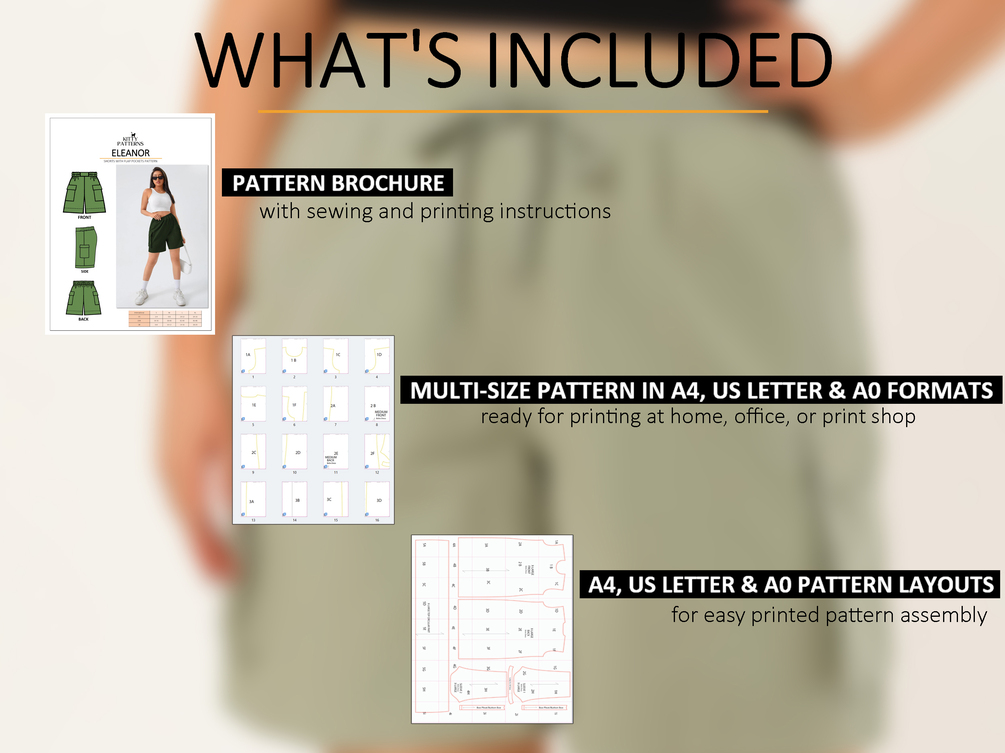 ELEANOR is a shorts with pockets and elastic waist PDF sewing pattern for instant download and printing at home, office, or print shop.